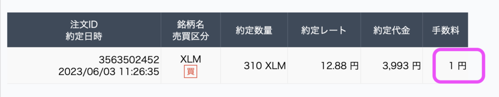 Post-only機能でメイカー注文取引成立のため、希望した金額でステラルーメンを買うことができました。